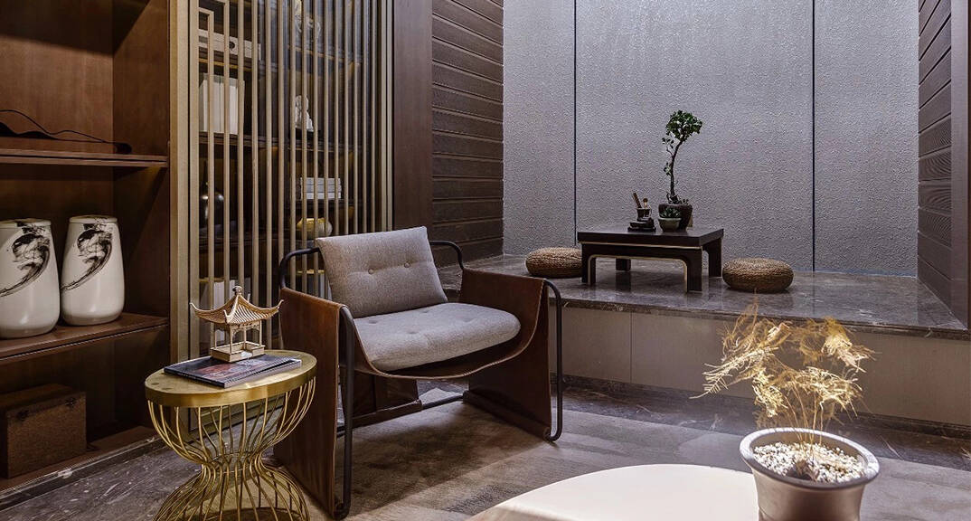 藤编座椅、扪皮沙发,看似格格不入的风格,在中式之风下,被融合,居然显得恰当如一。