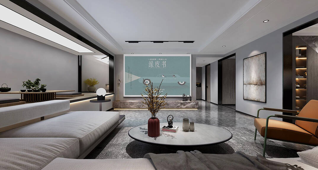三盛国际海岸140㎡下叠客厅现代风格装修案例效果图
