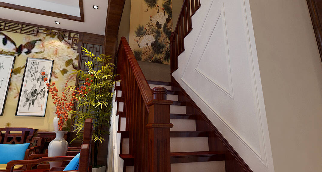 安纳溪220㎡独栋别墅楼梯古典中式风格装修案例效果图