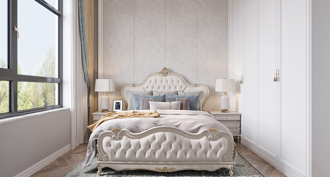 海信千亩园240㎡三室两厅主卧美式轻奢风格装修案例效果图