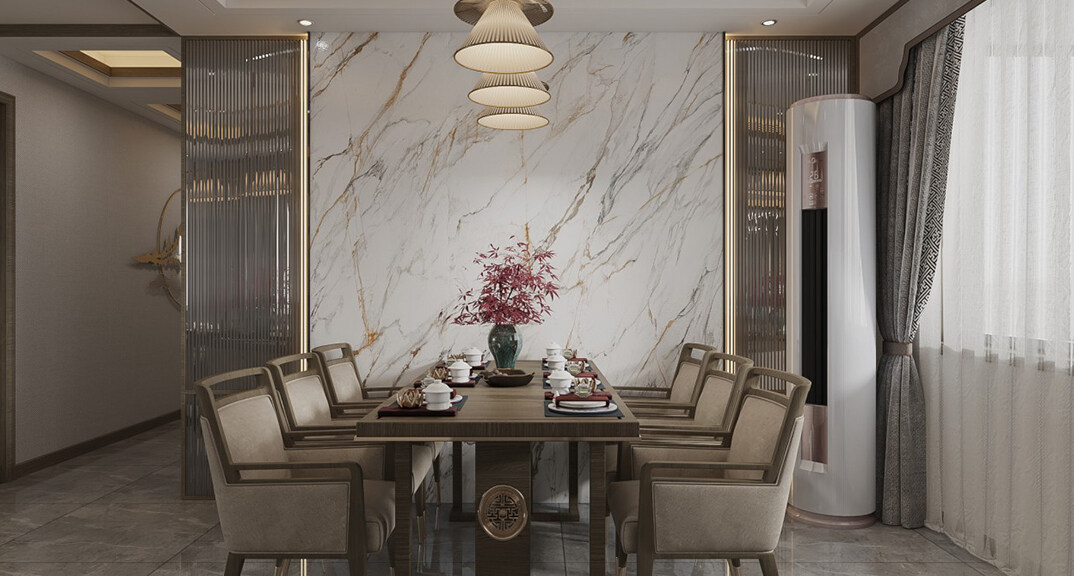 绿城晓峰湖畔130㎡三室二厅餐厅新中式轻奢风格装修案例效果图