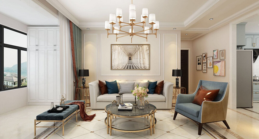 桂花园110㎡三室两厅客厅轻奢风格装修案例效果图