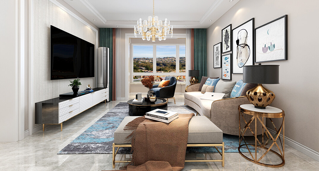 南岭风景89㎡两室两厅客厅现代风格装修案例效果图