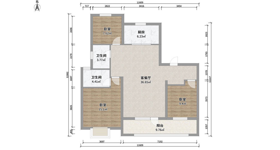 依云四季118㎡三室两厅次卧美式简约风格户型研发案例效果图