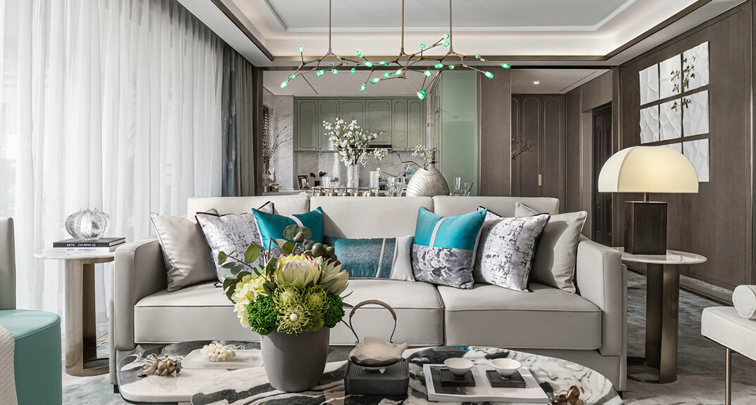 青特星城142㎡三室两厅客厅新中式风格装修案例效果图