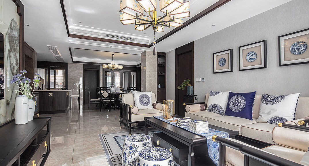 青特星城142㎡三室两厅客厅新中式风格装修案例效果图