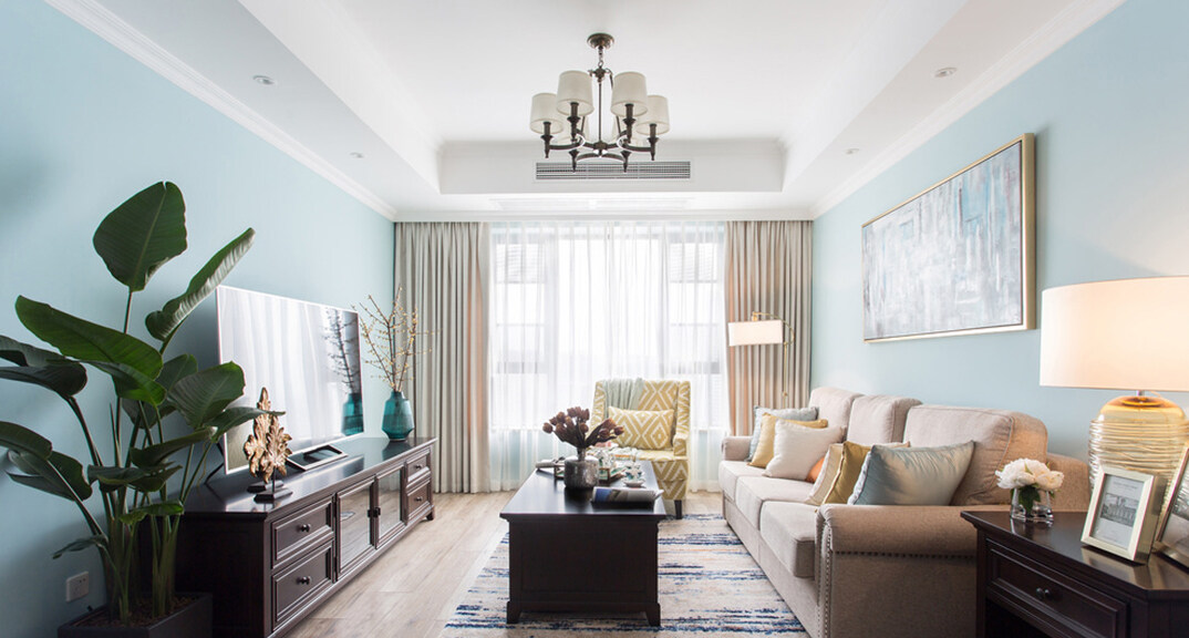 青特星城119㎡三室两厅客厅美式风格装修案例效果图