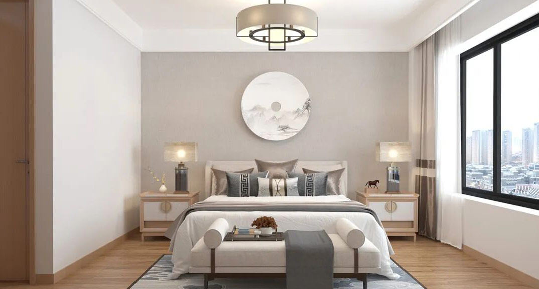 白鹭湾182㎡四室两厅主卧新中式风格装修案例效果图