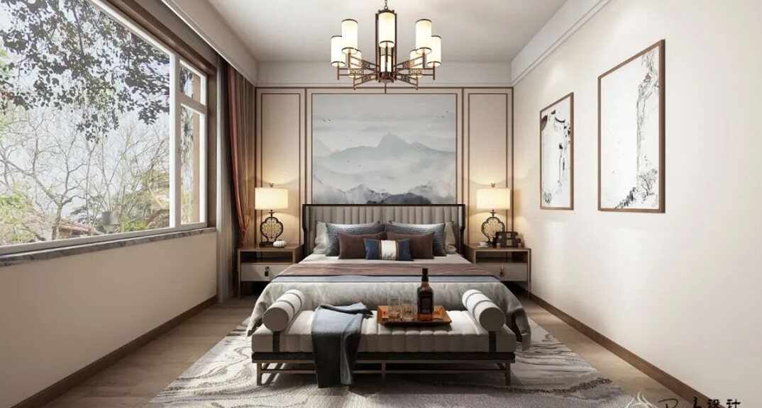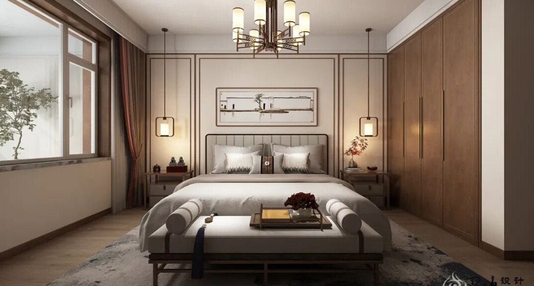悦湖湾300㎡别墅主卧新中式风格装修案例效果图