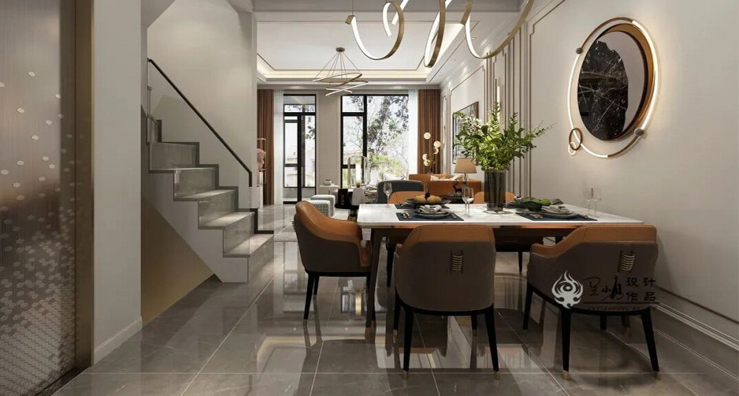 原筑300㎡别墅餐厅现代轻奢风格装修案例效果图