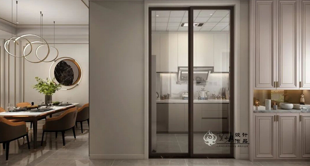 原筑300㎡别墅餐厅厨房现代轻奢风格装修案例效果图