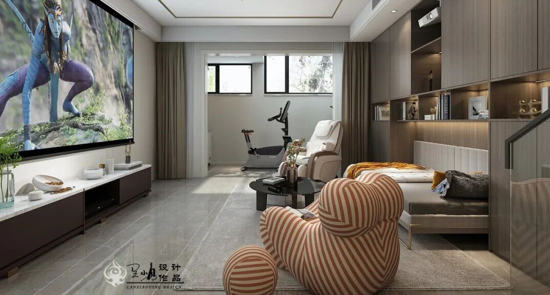 原筑300㎡别墅健身房现代轻奢风格装修案例效果图