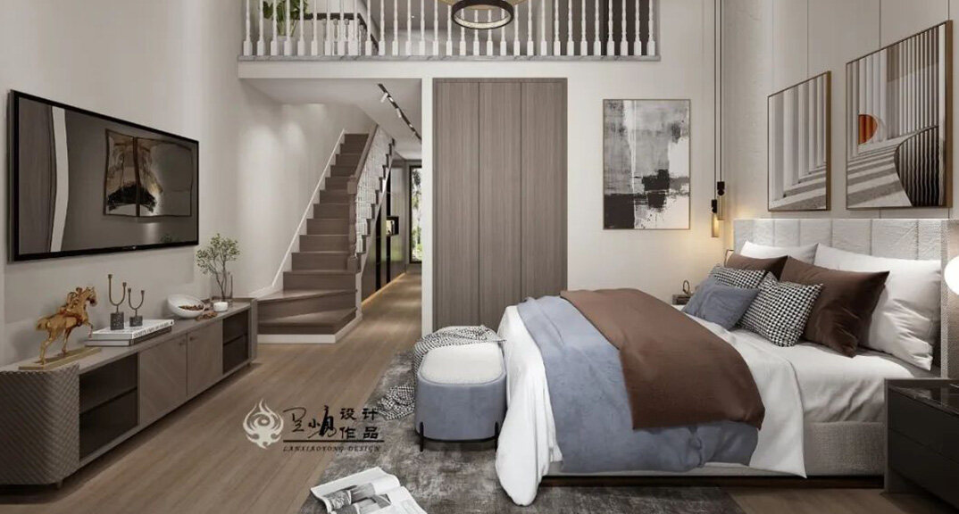 原筑300㎡别墅次卧现代轻奢风格装修案例效果图