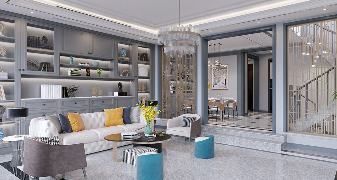 泰和郡338㎡联排别墅美式轻奢风格装修案例效果图