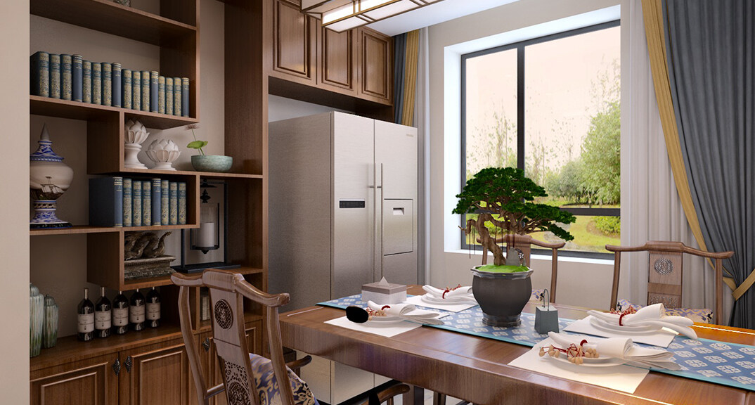 新兴中心城125㎡三室两厅餐厅新中式风格装修案例效果图