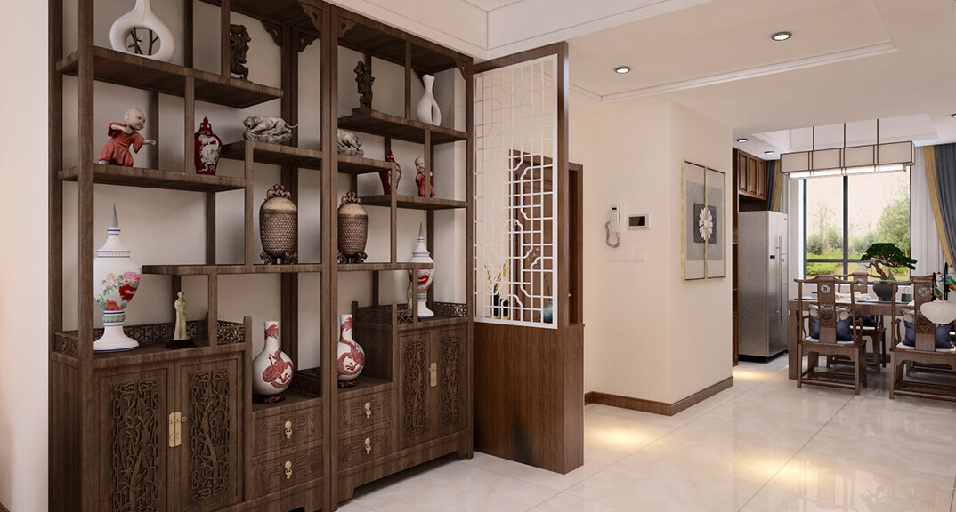 新兴中心城125㎡三室两厅门厅走廊新中式风格装修案例效果图