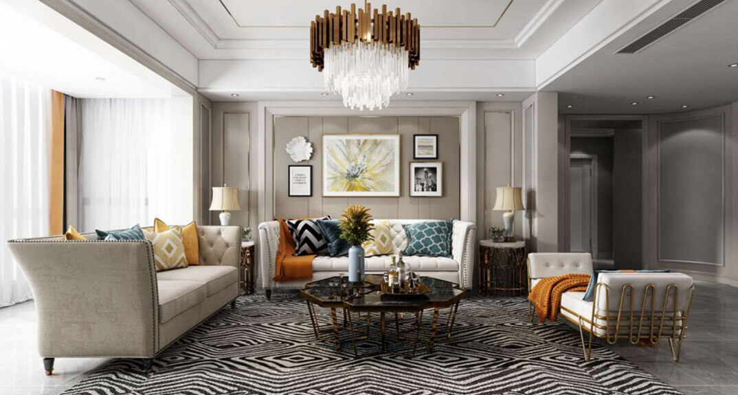 晓港名城140㎡三室两厅客厅沙发现代简约风格装修案例效果图