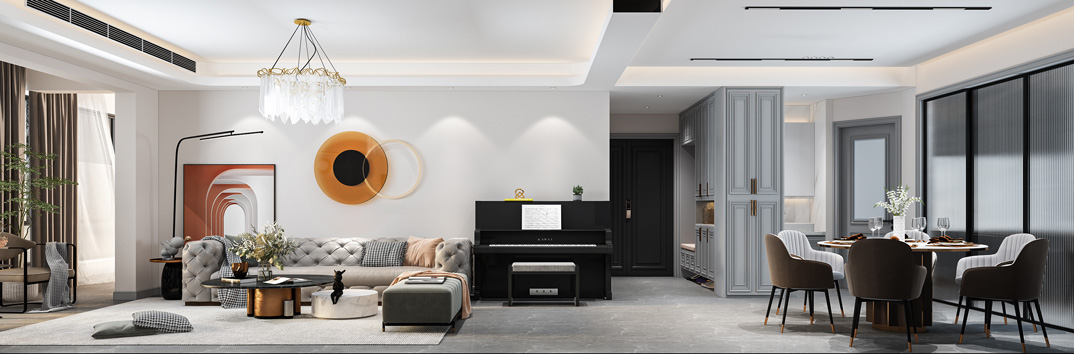 安泰悦湖湾140㎡四室两厅客餐厅沙发现代风格装修案例效果图