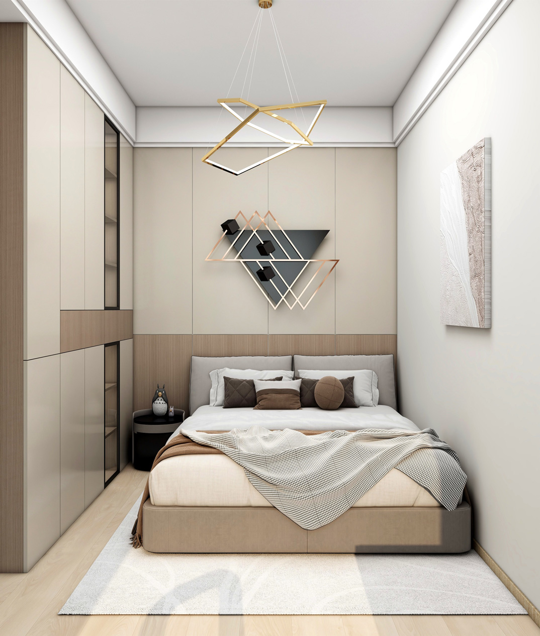 西藏路小区85㎡两室一厅主卧现代风格装修案例效果图