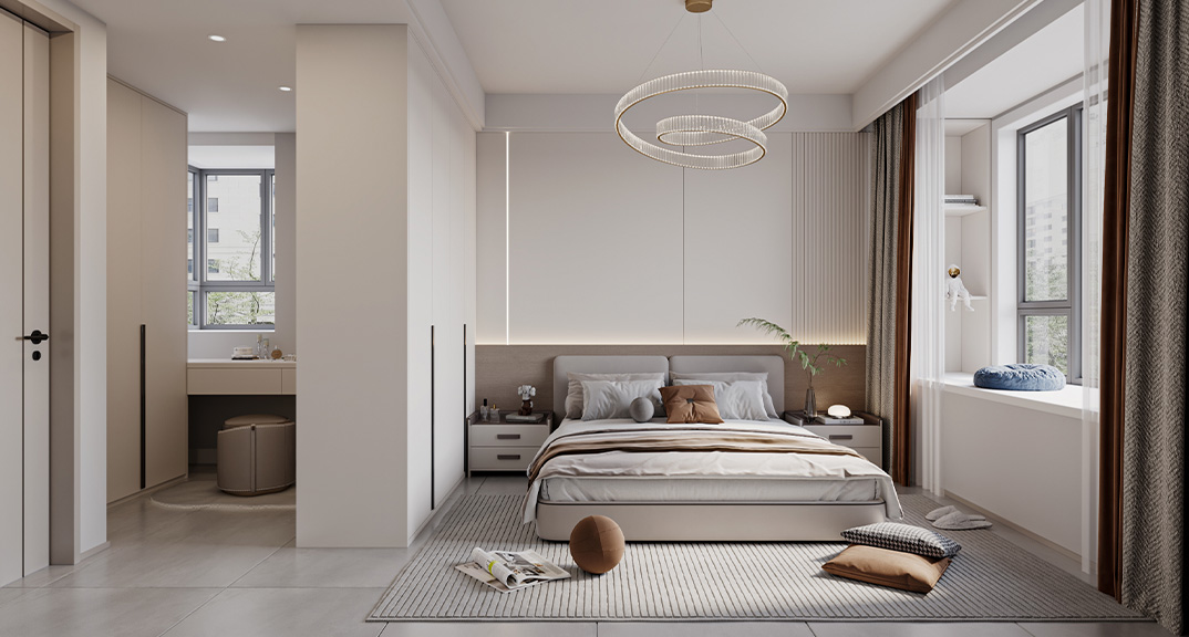 大连花园128㎡三室两厅卧室现代简约风格装修案例效果图